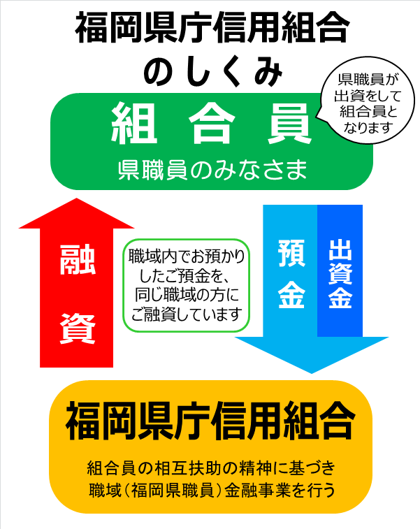 福岡県庁信用組合は、福岡県職員(知事部局、県警本部、教育庁(公立学校を除く))及び関係団体の職員の皆様がご利用いただける職域信用組合です。